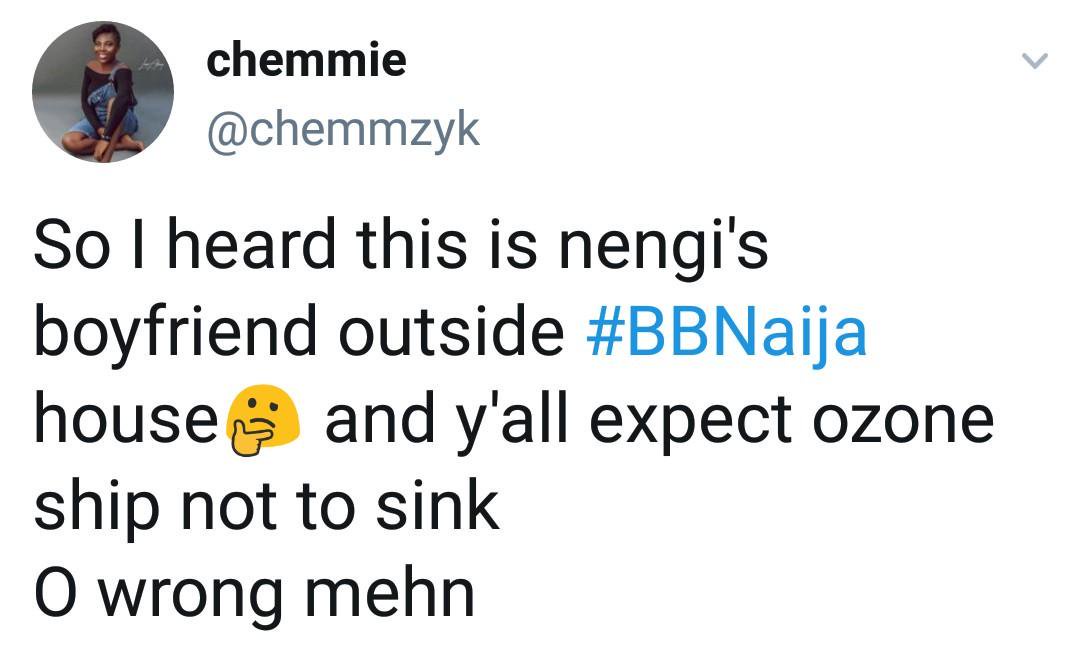 BBNaija housemate, Nengi’s boyfriend she talked about on the outside has been exposed by a lady on Twitter who claims she knows the boyfriend.
