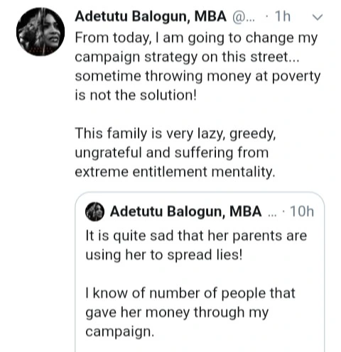 A lady identified as Adetutu Balogun took to her twitter account to lambaste the small girl for being ungrateful to the help Nigerians offered her. She testifed that she personally led a campaign to raise funds for Success to support of her education.